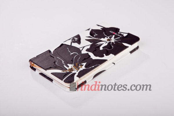 Черно-белый цветочный дизайн записной книжки одновременно нарядный и классический. Лаконичное цветовое сочетание уравновешивается изящными линиями и нетривиальным рисунком. Пышные женственные цветы, похожие на орхидеи,  декорированы лаком и фольгой.