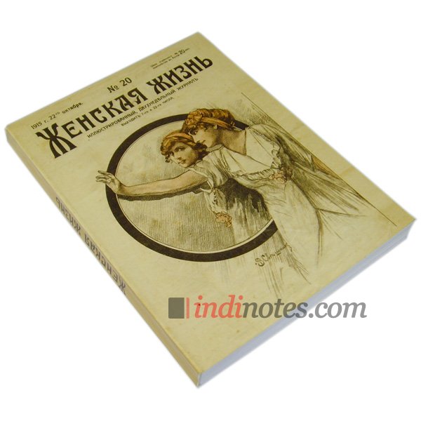 Оригинальный блокнотик в дореволюционном стиле. Обложка — копия обложки антикварного журнала «Женская жизнь» №20 за 1915 год. Маленький размер, мягкий переплет.