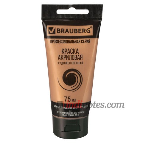 BRAUBERG ART CLASSIC Краска акриловая художественная, ПЕРЛАМУТРОВАЯ МЕДНО-ЗОЛОТАЯ, туба 75 мл