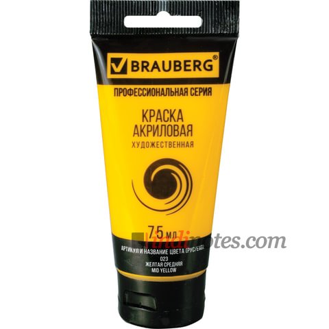 BRAUBERG ART CLASSIC Краска акриловая художественная, ЖЕЛТАЯ СРЕДНЯЯ, туба 75 мл