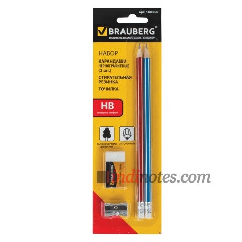 Интернет магазин Индиноутс предлагает ознакомиться с  BRAUBERG Набор из 2-х чернографитовых карандашей, точилки, ластика в блистере из раздела Ручки и карандаши.
