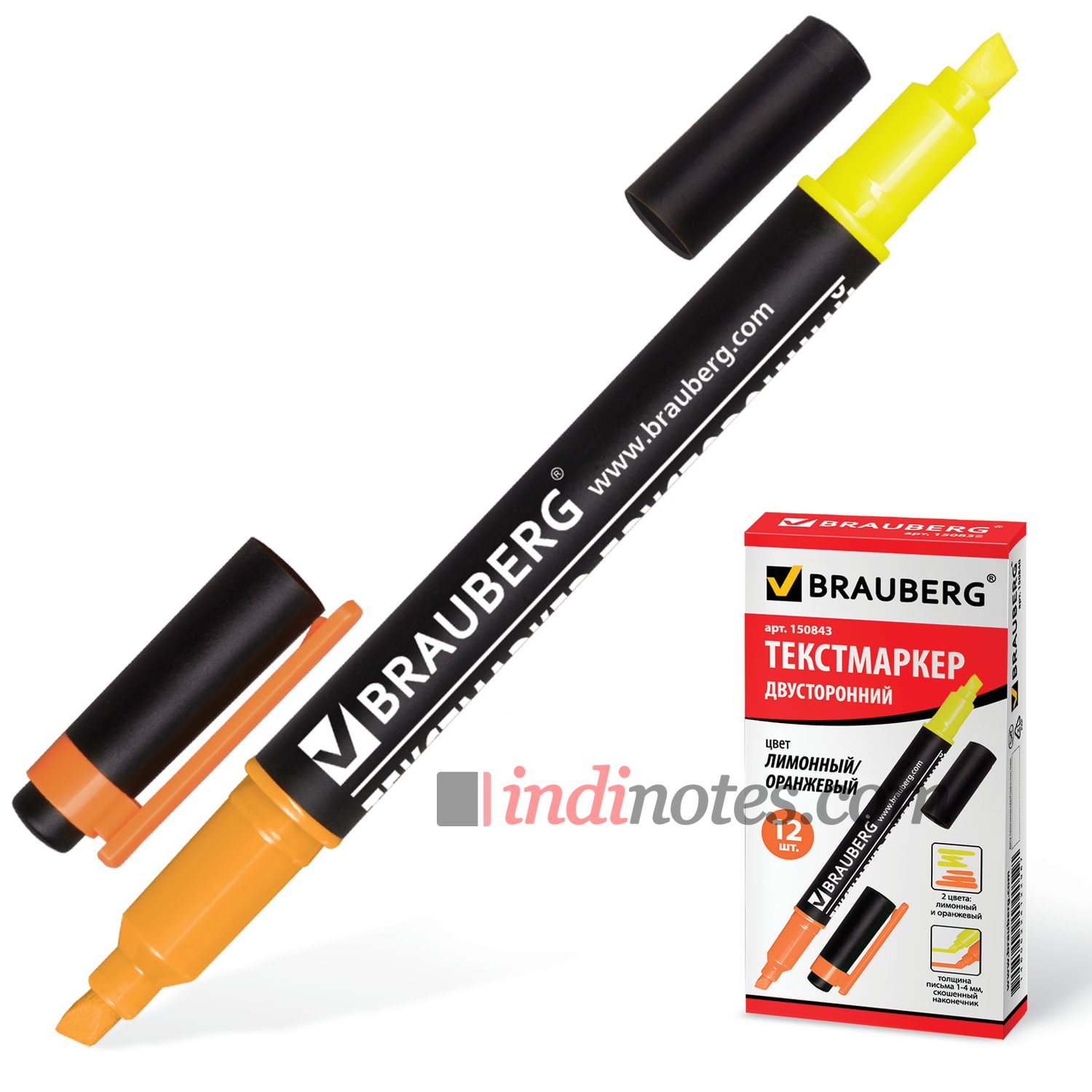 Интернет магазин Индиноутс предлагает ознакомиться с  BRAUBERG Текстовыделитель двусторонний, желтый/оранжевый, линия 1-4 мм из раздела Маркеры, Ручки и карандаши.