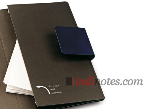 Практичный современный ежедневник с обложкой из традиционного материала, с дизайнерским флаером, резинкой и интегрированной закладкой.