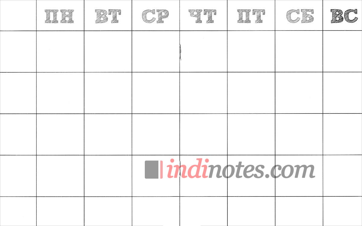 Каждый разворот представляет собой календарную сетку на месяц — простой, удобный и наглядный способ организовать свое время.