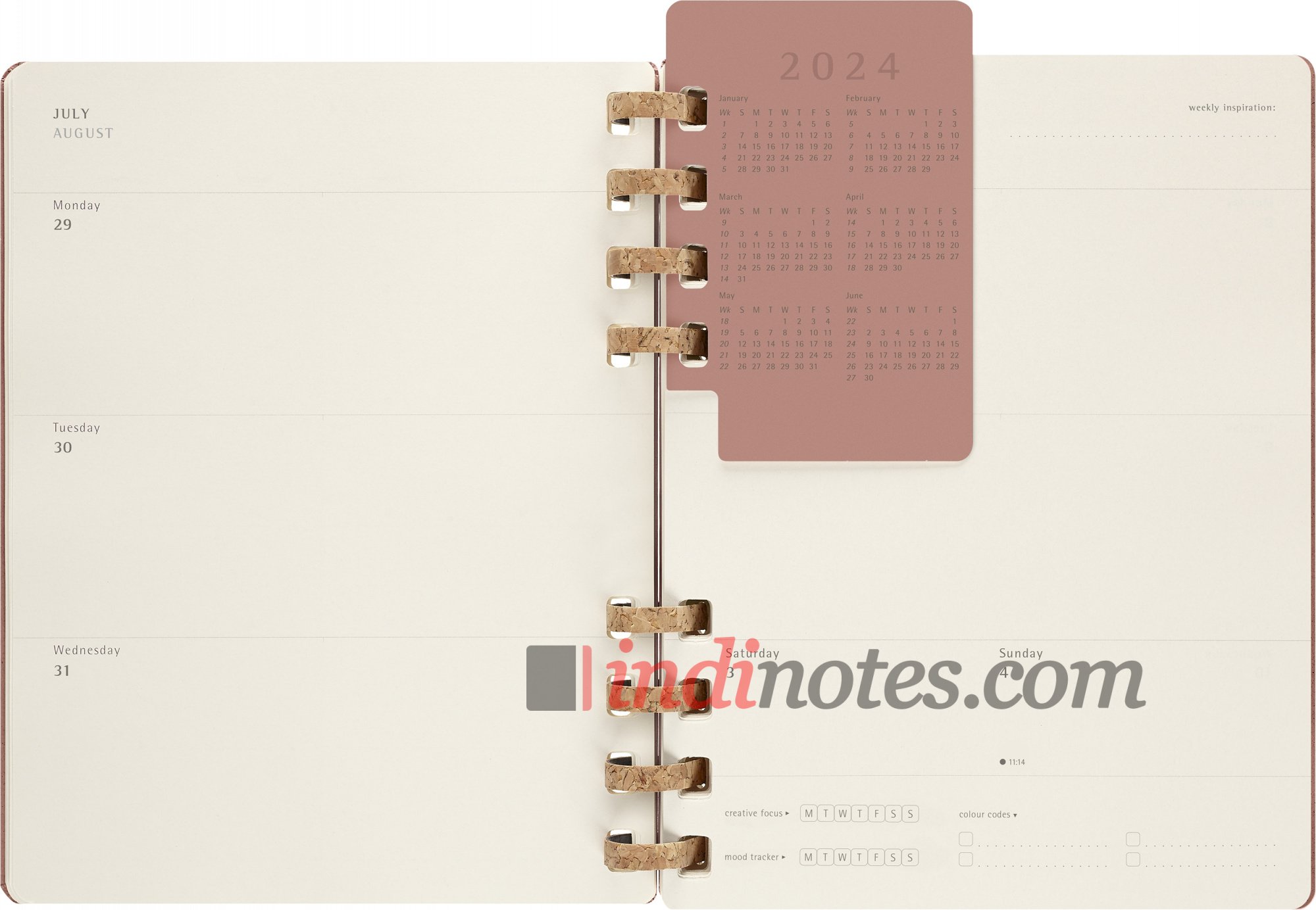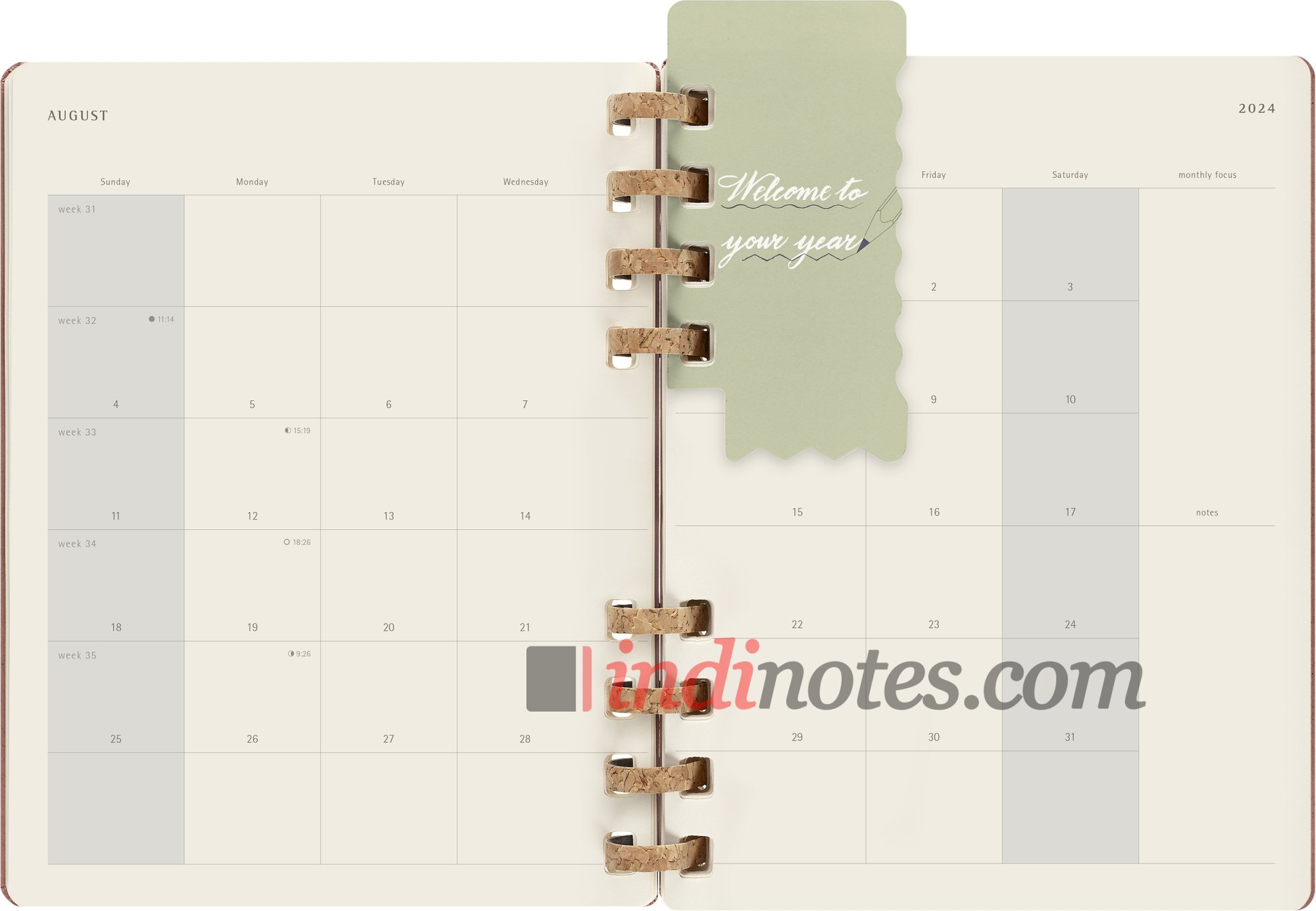С января по декабрь 2024 года каждый месяц начинается с двухстраничного разворота, показывающего весь месяц с первого взгляда. За этим следует неделя для просмотра на двух страницах для более детального планирования.