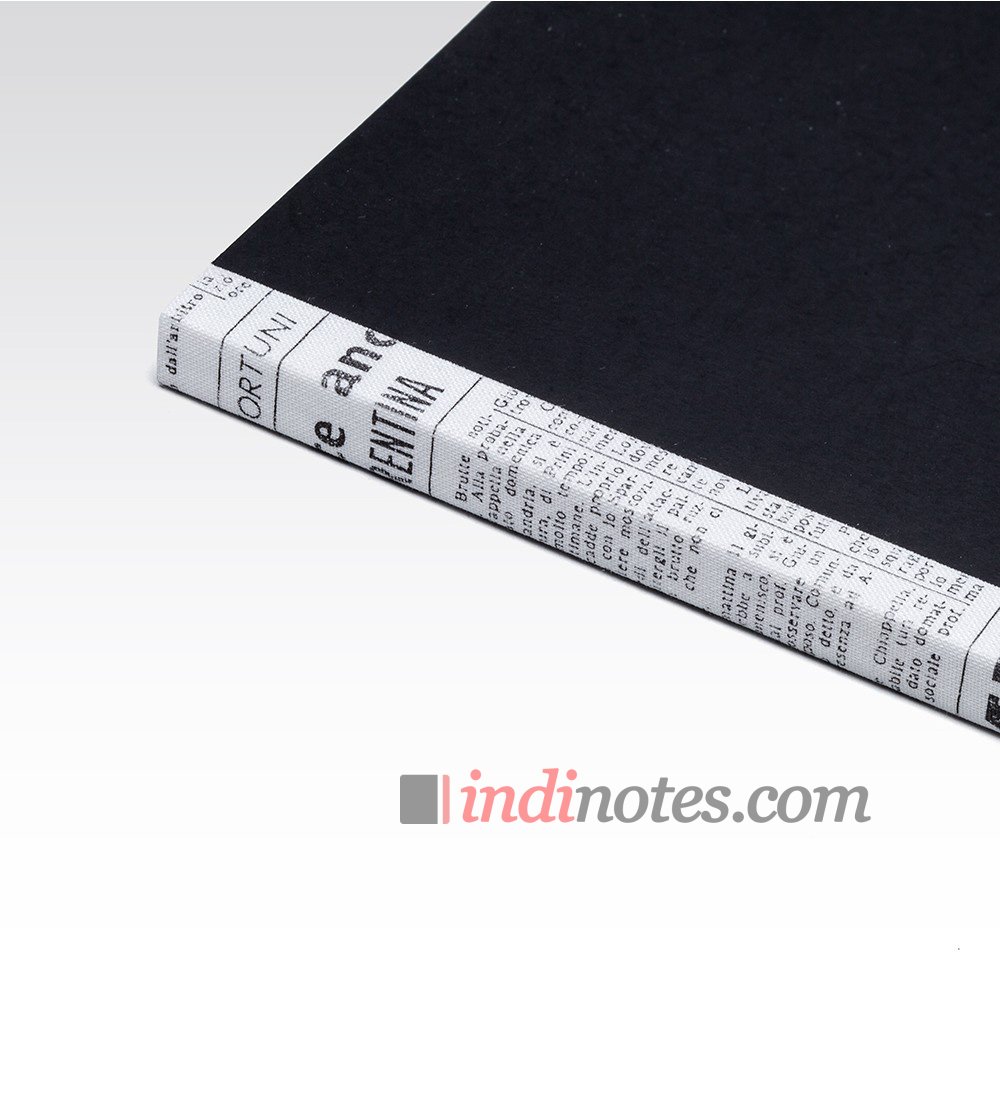 Надежный гибкий переплет, покрытый тканым корешком с принтом в цвет обложки. Напечатанный рисунок на ткани воспроизводит часть первой страницы итальянской газеты, делая каждый блокнот отличающимся от следующего.