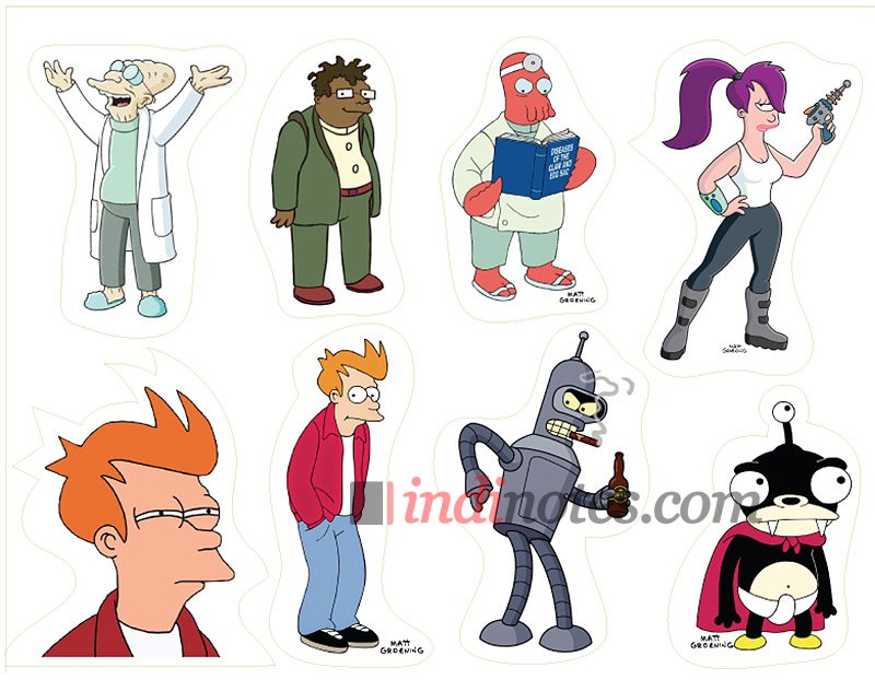 Лист виниловых наклеек (стикеров) с различными изображениями героев мультсериала Футурама (Futurama).