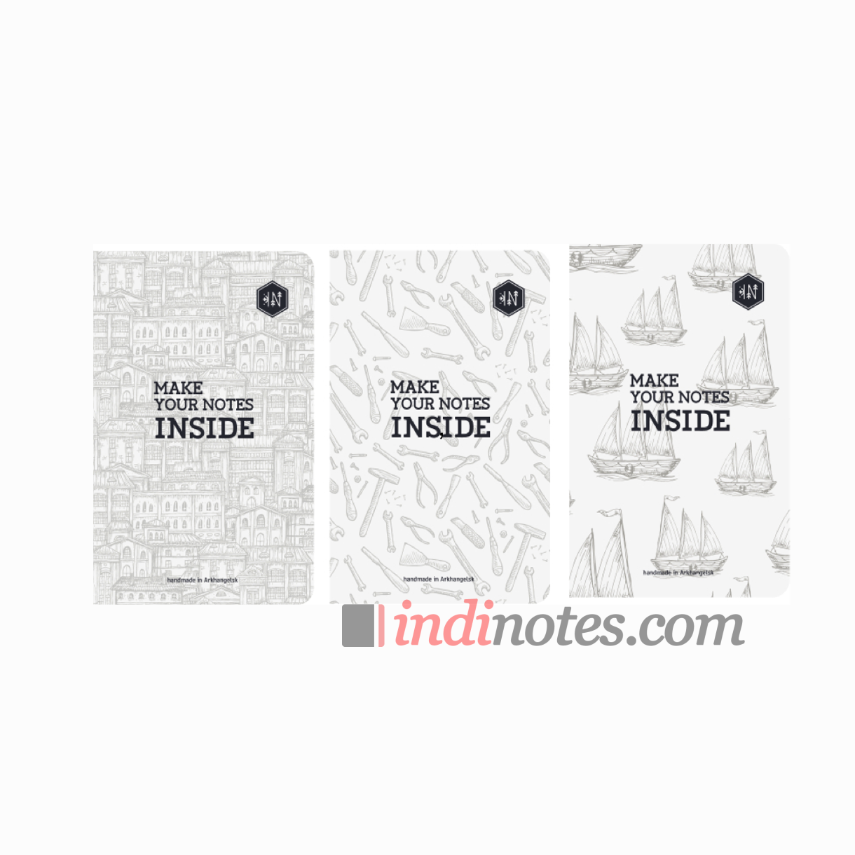 В комплекте — 3 блока-тетрадки с паттернами «мужских» интересов на обложках:  инструменты, архитектура, парусники для записных книжек Inside.