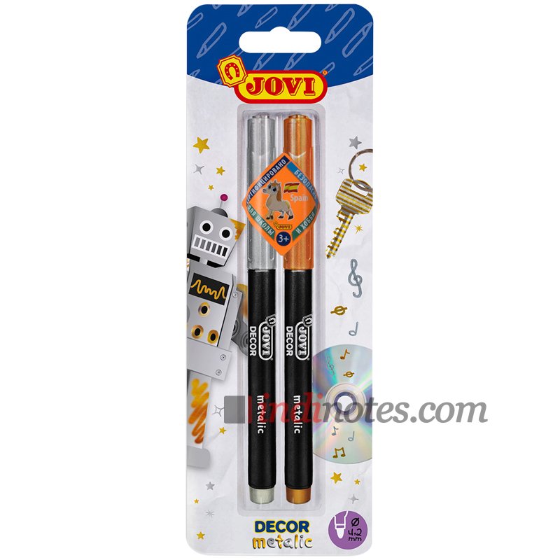 Набор маркеров для декорирования JOVI Decor metaliс Золото+Серебро 2 цвета, металлик, пулевидные, линия 2 мм арт 1602М