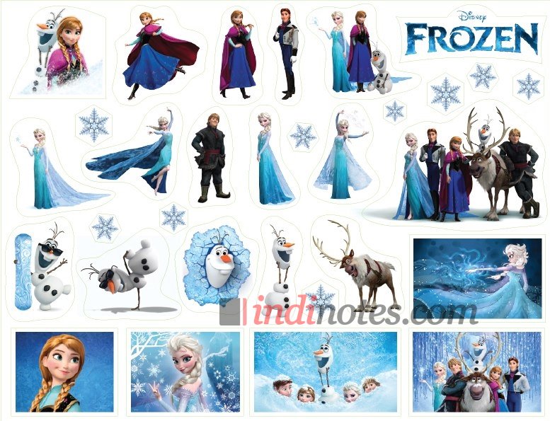 Лист виниловых наклеек (стикеров) с различными изображениями персонажей мультфильма Холодное Сердце (Frozen).