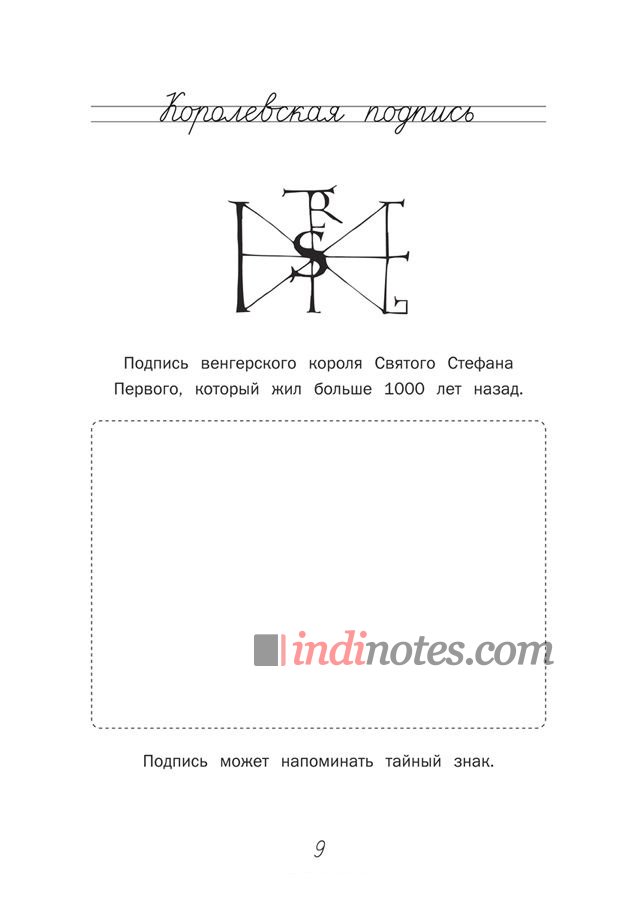 Эта необычная тетрадь поможет вашему ребенку придумать самую оригинальную и красивую подпись! На что она будет похожа? На тайный знак или монограмму, на логотип или рисунок граффити? Может, она будет выглядеть как печать средневекового короля или подпись королевы - с бантиками и завитушками? В тетради множество идей, которые можно повторить прямо на страницах книги!