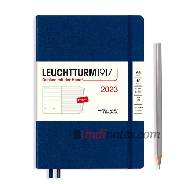Интернет магазин Индиноутс предлагает ознакомиться с  Leuchtturm1917 Еженедельник-блокнот на 2023 год, неделя на странице, Navy (темно-синий) А5 Medium из раздела Еженедельники.