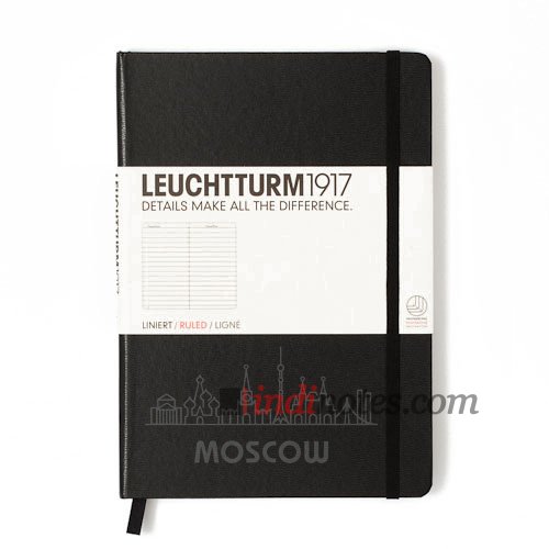 Новинка немецкого бренда Leuchturm1917 — лимитированное издание классической записной книжки в черной обложке — Medium Notebook Black Moscow Edition. Это посвящение Москве, которое выражено создателями специальным блинтовым тиснением достопримечательностей российской столицы на обложке.
