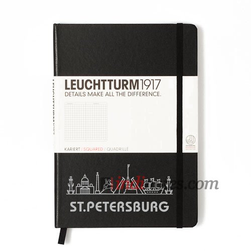 Новинка немецкого бренда Leuchturm1917 — лимитированное издание классической записной книжки в черной обложке — Medium Notebook Black St.Petersburg Edition. Это посвящение Санкт-Петербургу, которое выражено создателями специальным серебряным тиснением достопримечательностей города на Неве на обложке.