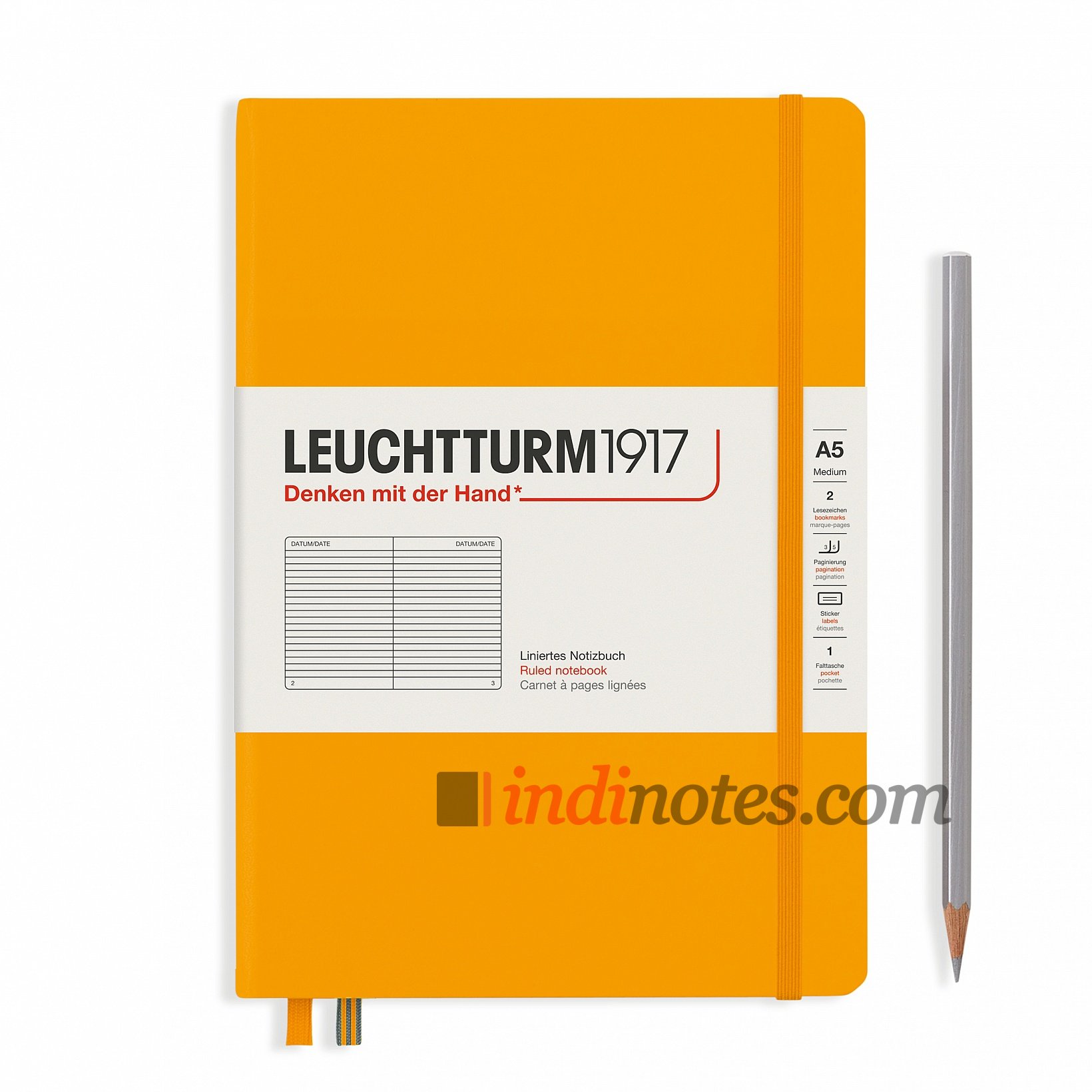 Классические детали качественного немецкого продукта, как всегда в наличии: плотная бумага, дружелюбная для многих пишущих инструментов, включая линеры и перьевые ручки, две тканевые закладки, кармашек для визиток и эластичная фиксирующая резинка.
