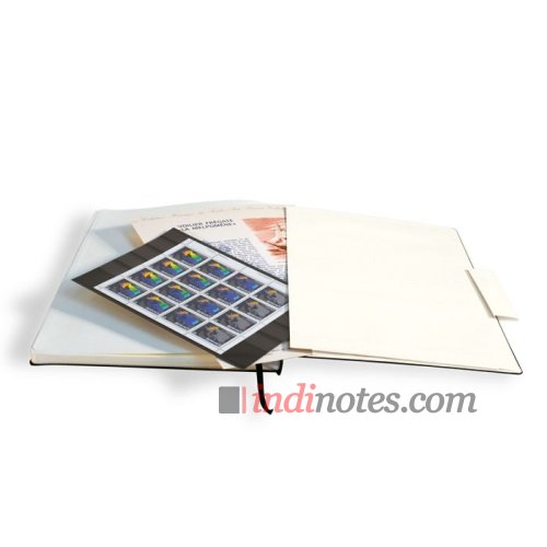 - бумажный карман на задней внутренней части обложки для бумажной мелочи (помещается страница формата А4)