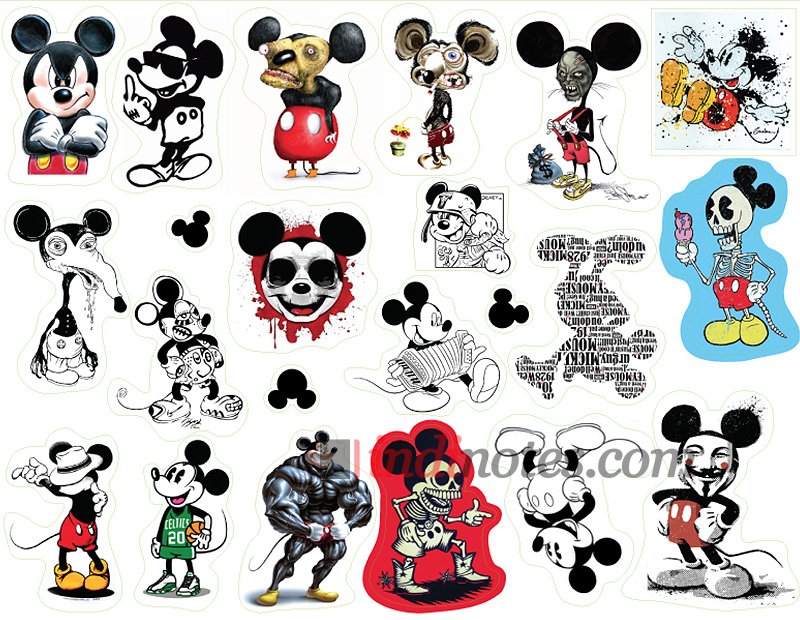 Лист виниловых наклеек (стикеров) с различными изображениями Микки Маус.