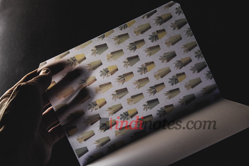• цветочный принт на кальке спереди и око на последней странице