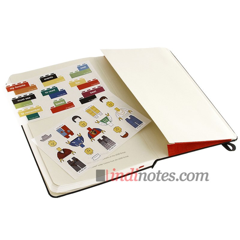 К записной книжке прилагается комплект наклеек на основе изображений деталей конструктора Lego.