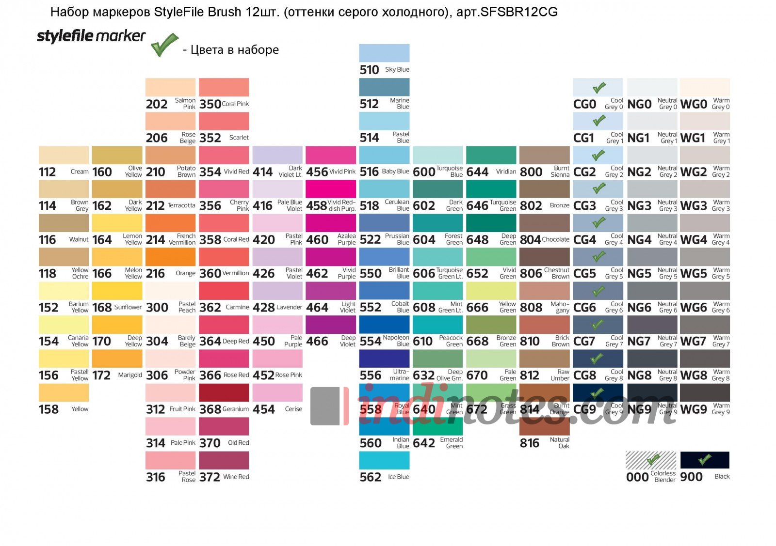- CG0 - CG9 (все оттенки холодного серого, всего 10 шт.)