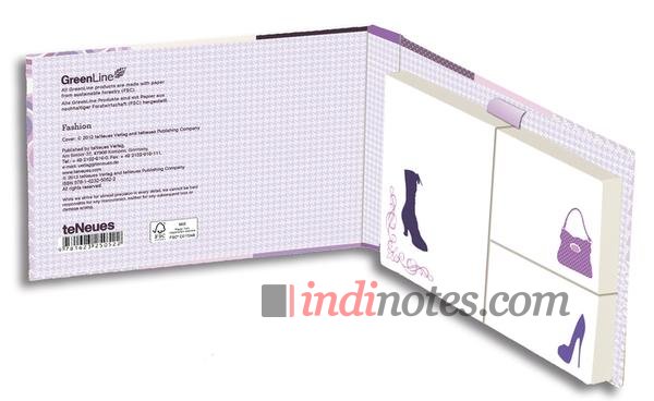 teNeues GreenStickyNotes Fashion — набор стикеров-заметок для записей в разных форматах, удобно упакованных в блокнот на резинке формата А6.