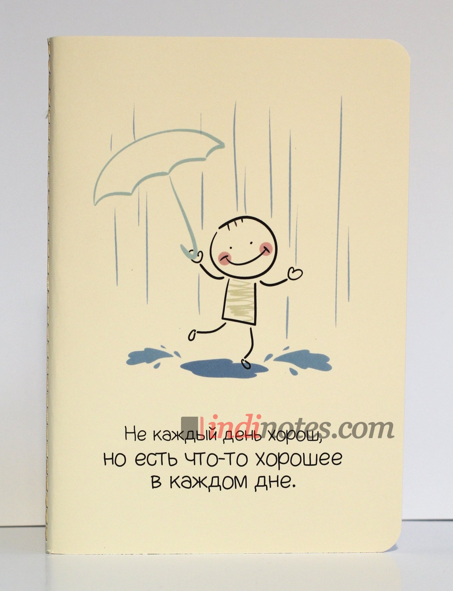 Развесёлый человечек скачущий по лужам под проливным дождём. Эта тетрадь для неисправимых оптимистов. Собирайте в неё все положительные моменты из вашей жизни. И пусть их будет как можно больше. Обложка тетради из дизайнерской бумаги цвета слоновая кость и блок на тонированной бумаге сочетаются наилучшим образом. Приятных вам заметок!