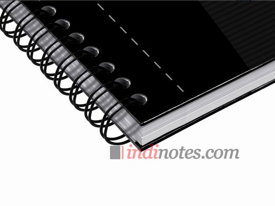 Снаружи — ламинированная обложка из плотного (но гибкого) картона черного цвета и переплет на двойном металлическом гребне, а внутри — 90 листов фирменной белоснежной гладкой бумаги Oxford Optik paper в клетку или линейку, плотностью 90 гр/кв.м., четкая неяркая линовка, скругленные углы и удобная гибкая закладка-линейка из матового полупрозрачного пластика.