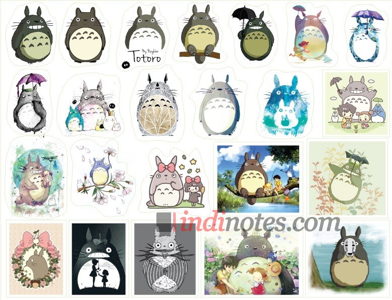 Лист виниловых наклеек (стикеров) с различными изображениями героев аниме-фильма, японского мультипликатора Хаяо Миядзаки - "Мой сосед Тоторо".