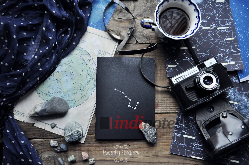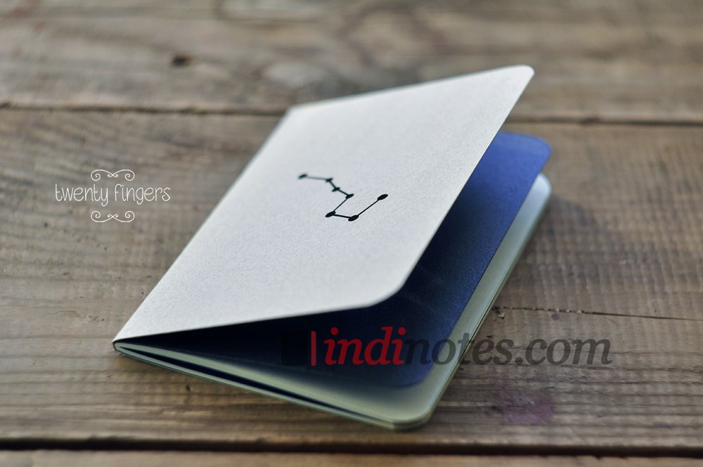 - двойная обложка из плотного фактурного цветного картона с вырезанным созвездием «Большая медведица» (благодаря двойной обложке, вырезанный рисунок совершенно не мешает писать или рисовать)