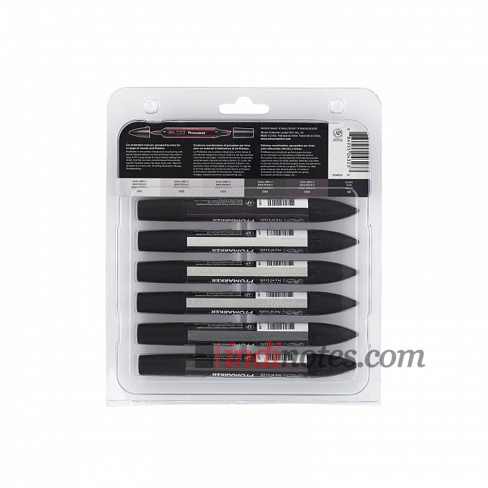 Набор включает в себя 6 двусторонних маркеров Winsor & Newton Promarker нейтральных серых оттенков.