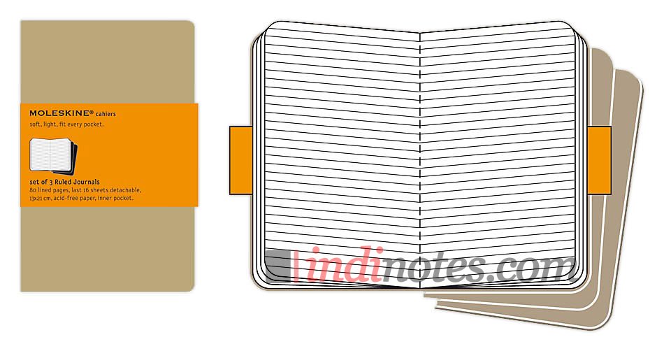 Интернет магазин Индиноутс предлагает ознакомиться с Записная книжка Moleskine Cahier (в линейку, 3 шт.), Large, бежевая.